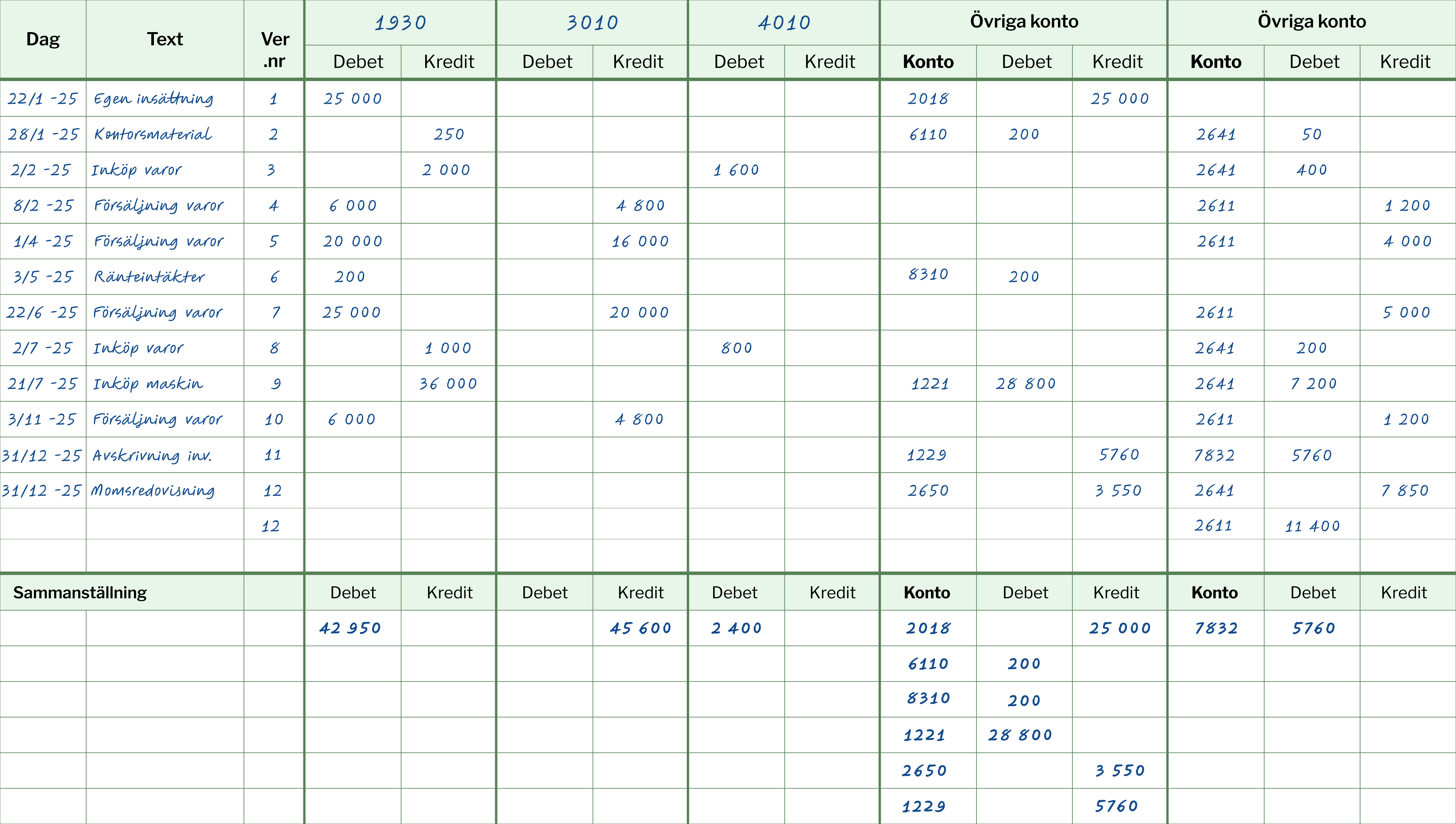 Först räknar du ihop vad som hänt under året utifrån din bokföringsbok.